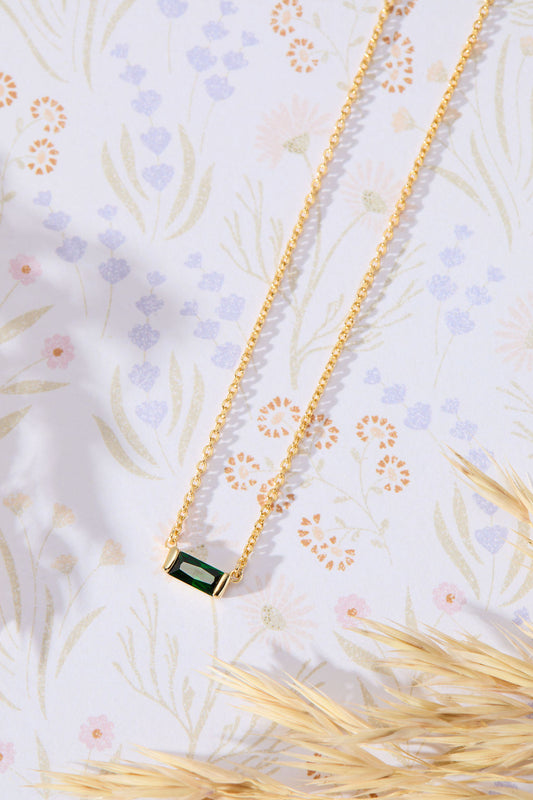 Clover | Rebirth - Fertility - Love | Gold Emerald Baguette Necklace