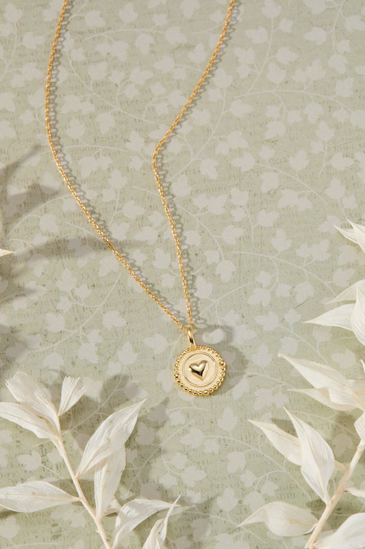 Beloved - Heart Disc Pendant, Gold