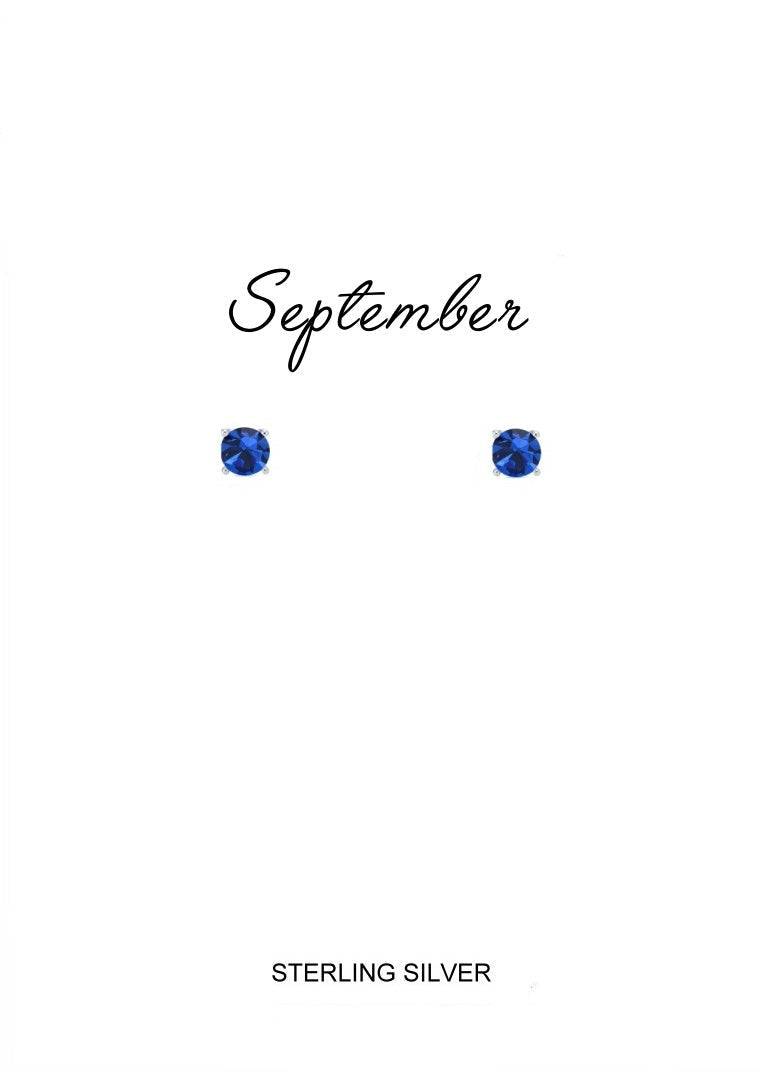 These 3MM sapphire-colored studs celebrate September with deep blue brilliance. A symbol of wisdom, loyalty, and inner strength, they add a bold, timeless sparkle to any look.