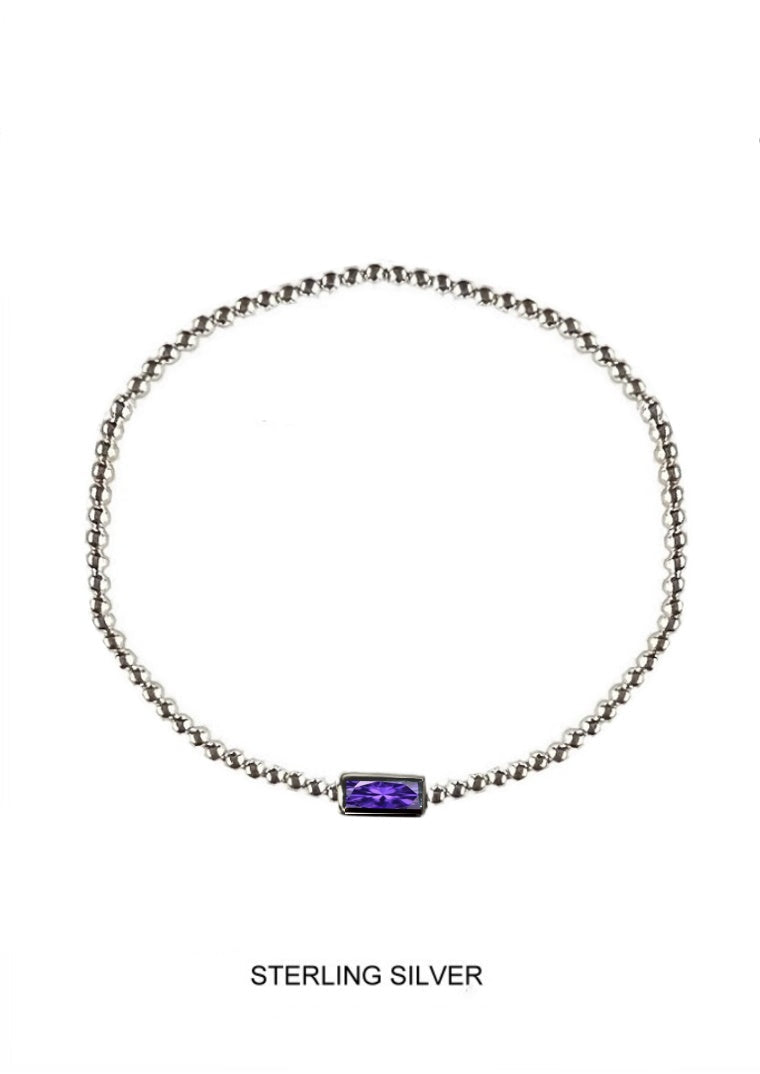 Elegant and effortless, Amour features polished silver beads and a rich purple CZ baguette centerpiece.