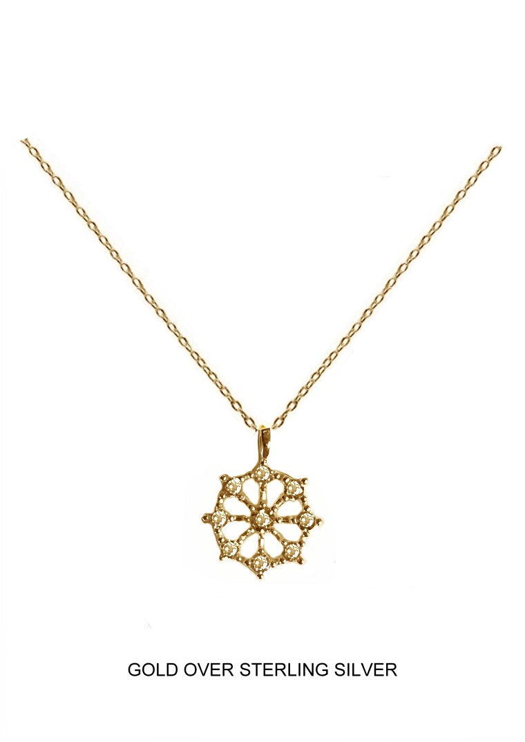 A soft shimmer of winter, reimagined in warm gold. This open snowflake pendant is adorned with clear CZ accents for a golden glow that feels both festive and timeless. Wear it solo or layer it for a delicate holiday statement.