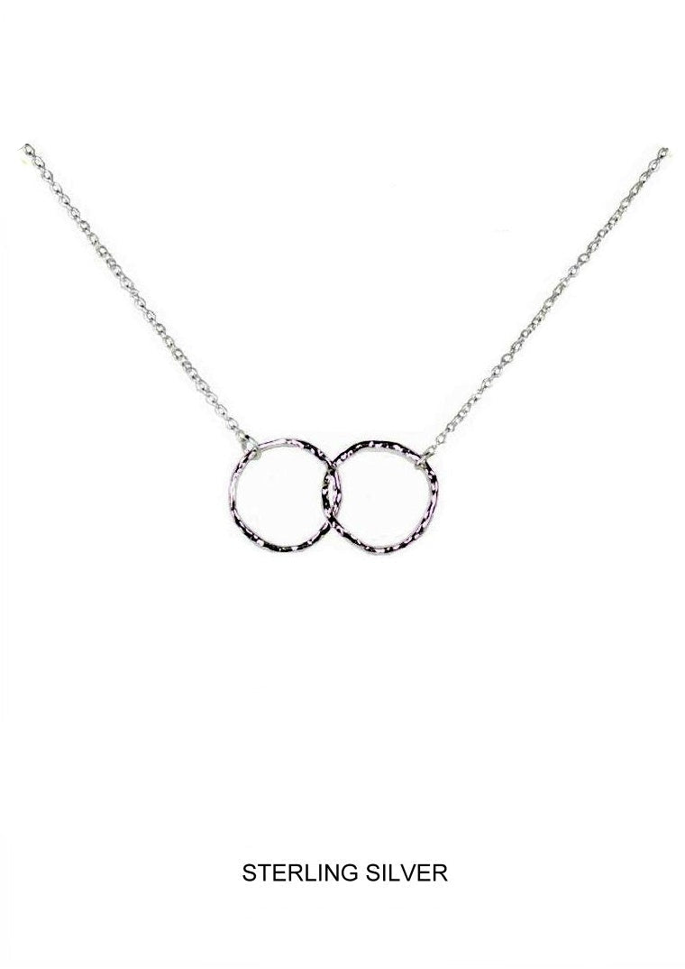 The Everlasting Friendship necklace features two intertwined silver circles—a timeless symbol of connection, unity, and the unbreakable bond between friends. Crafted in sterling silver and suspended on a 16" chain, this elegant piece celebrates the beauty of lasting relationships. Perfect as a gift to honor a special friendship or to wear as a daily reminder of the ties that bind.