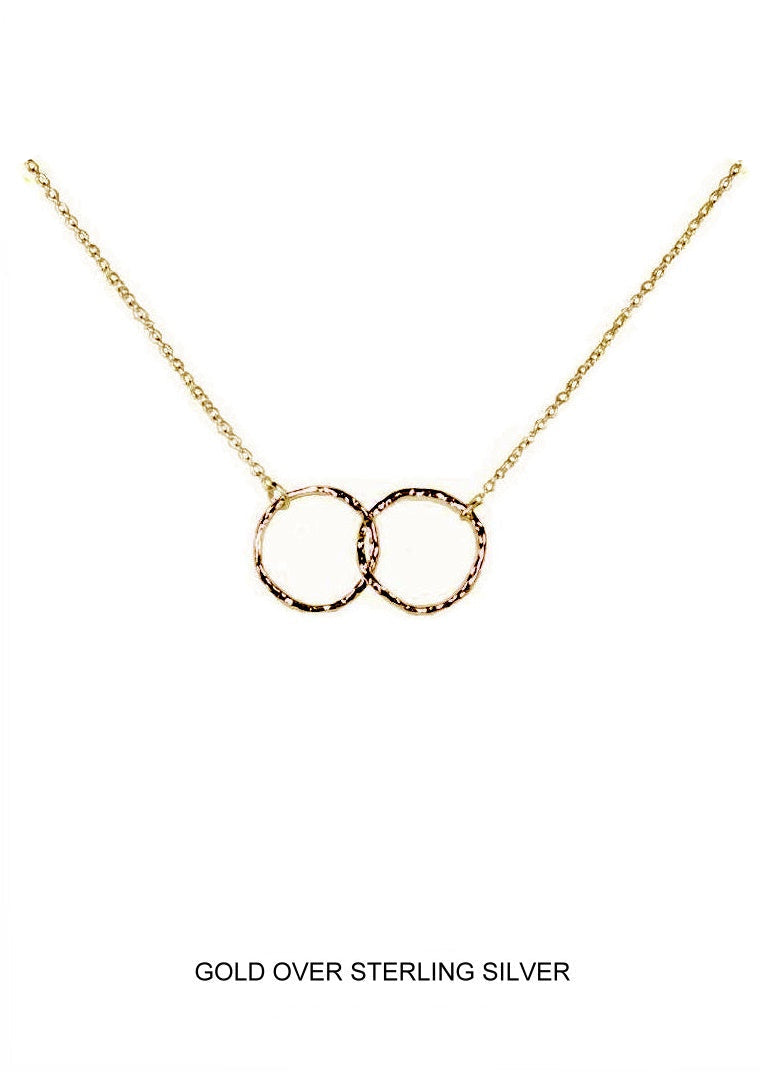 The Everlasting Friendship necklace features two intertwined gold circles—a timeless symbol of connection, unity, and the unbreakable bond between friends. Crafted in 14k gold over sterling silver and suspended on a 16" chain, this elegant piece celebrates the beauty of lasting relationships. Perfect as a gift to honor a special friendship or to wear as a daily reminder of the ties that bind.