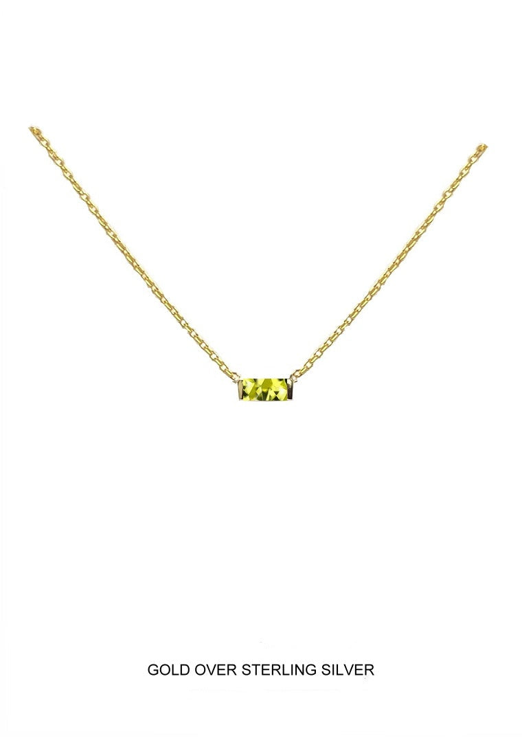 Fresh and uplifting, Wildflower features a 16" gold chain with a 2" extender and a horizontally set CZ baguette in light green.