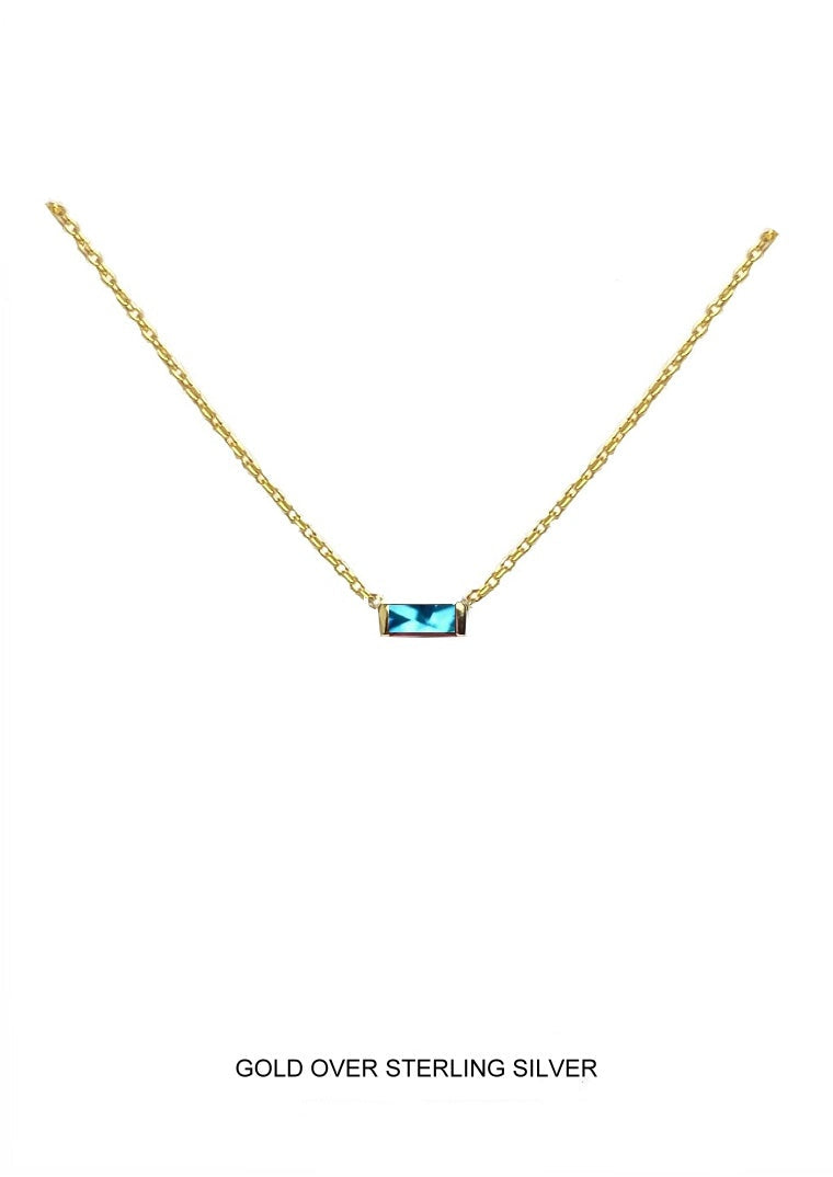 Light and refreshing, Seabreeze features a 16" gold chain with a 2" extender and a horizontally set CZ baguette in bright aqua.