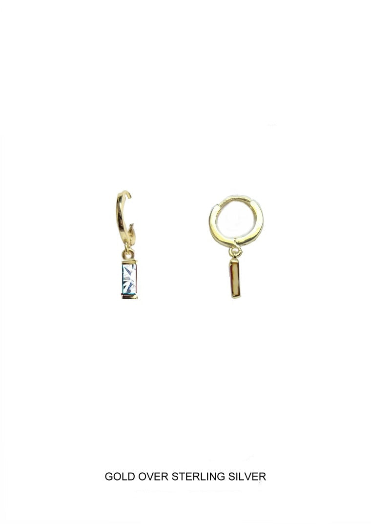 Classic and versatile, Glimmer gold huggie hoop earrings feature a dangling CZ baguette in sparkling clear crystal.