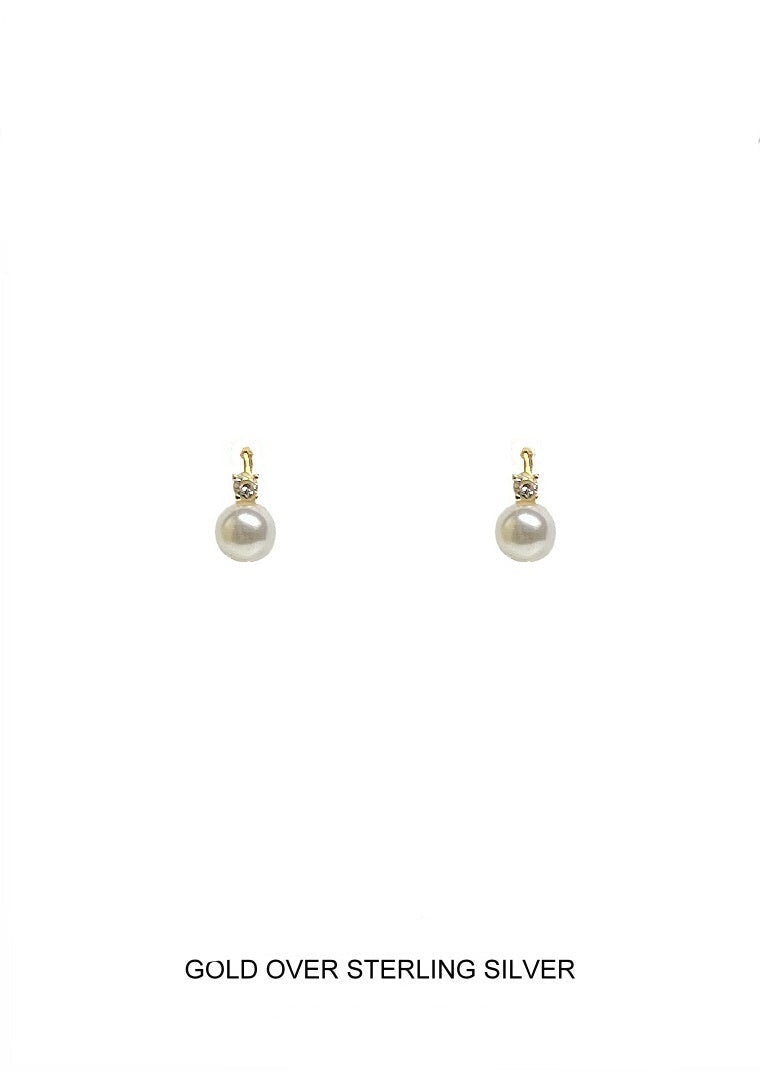 Gold Pearl with Small CZ Earring