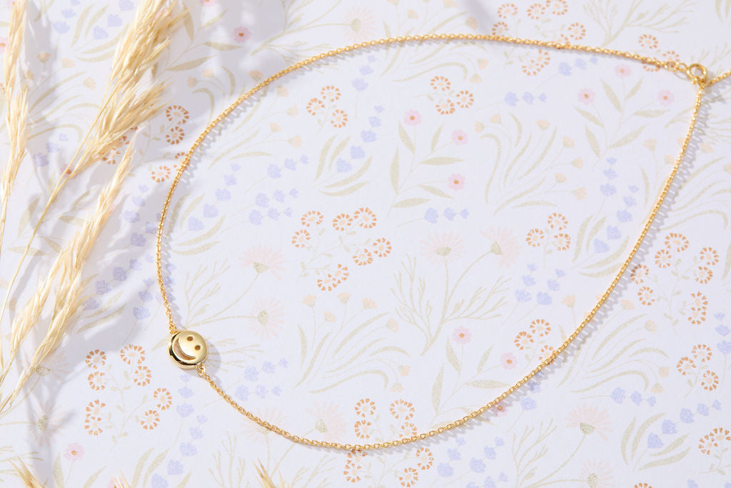 This cheerful smiley face necklace is made just for little ones, crafted in 14k gold over sterling silver with a 13.5" chain + 1" extender for a perfect fit. A sweet reminder to carry joy wherever they go—playful, lightweight, and built to shine through every adventure.