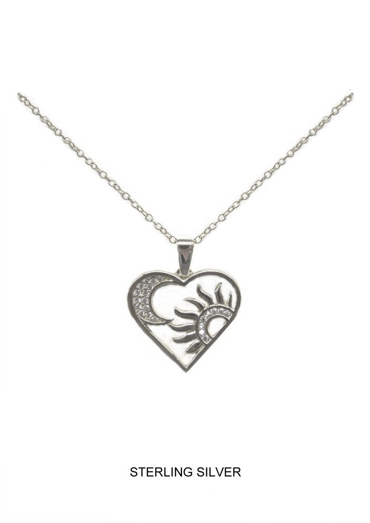 Heart Sun & Moon Necklace - Silver CZ Pendant