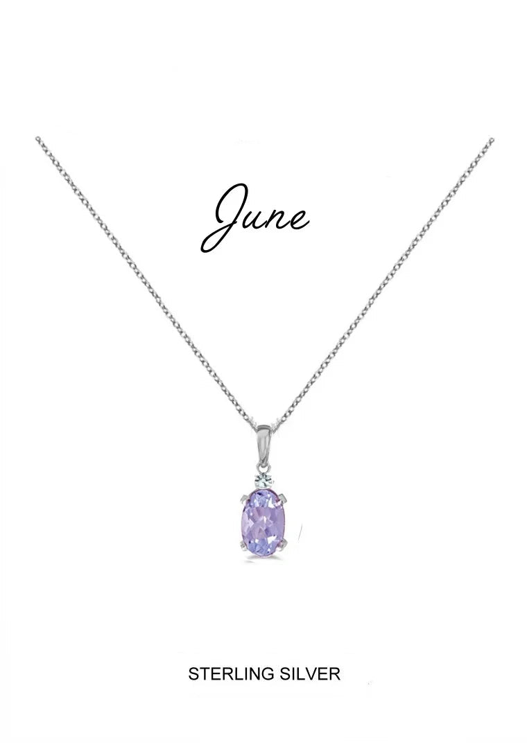 Soft and dreamy, this pale lavender CZ is inspired by June’s birthstone—representing intuition, grace, and inner peace. A delicate pendant on a 14" sterling silver chain makes it a beautiful keepsake.