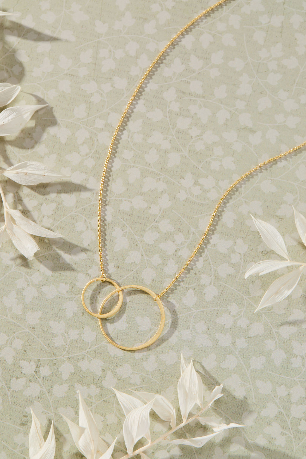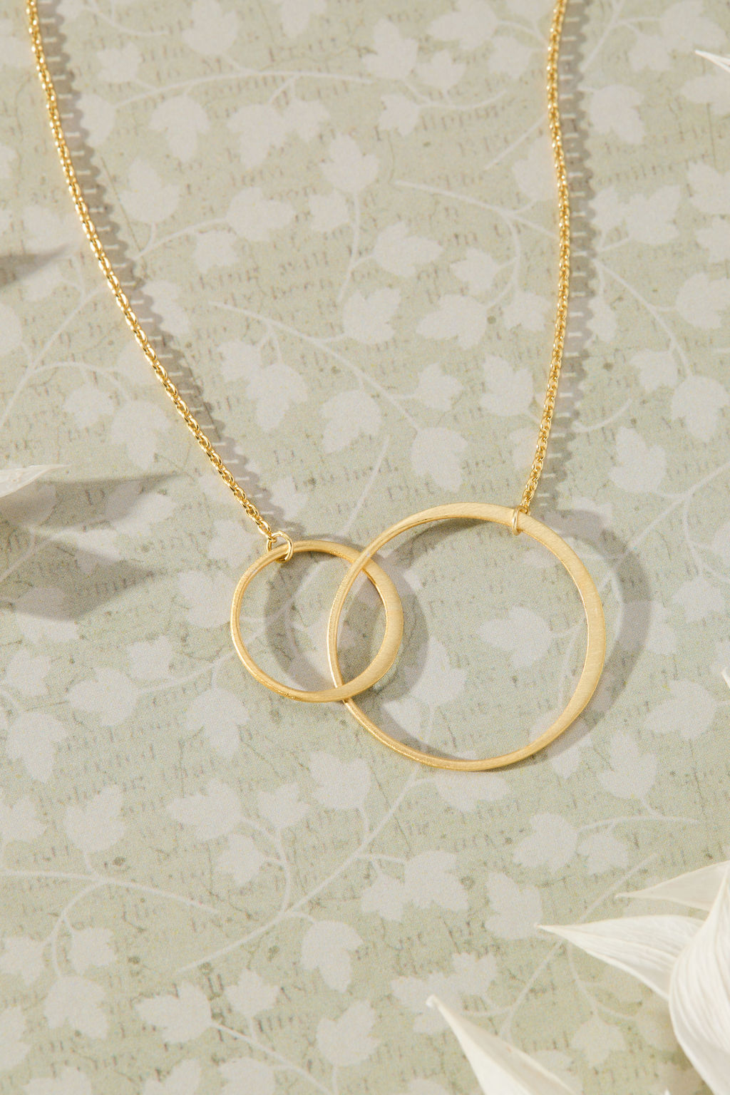 Two interlocking gold circles represent the unbreakable bond between mother and daughter—distinct, but forever linked. Set on a 16" chain with 1" extender, it’s a daily reminder that love always comes full circle.