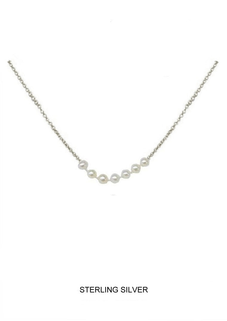 The Sevenfold Kids necklace is a sweet and simple reminder of love and faith, with seven tiny freshwater pearls strung along a 14" silver chain—just the right size for little hearts. Crafted in sterling silver, it’s a special piece to wear every day, whether on its own or layered with favorites.