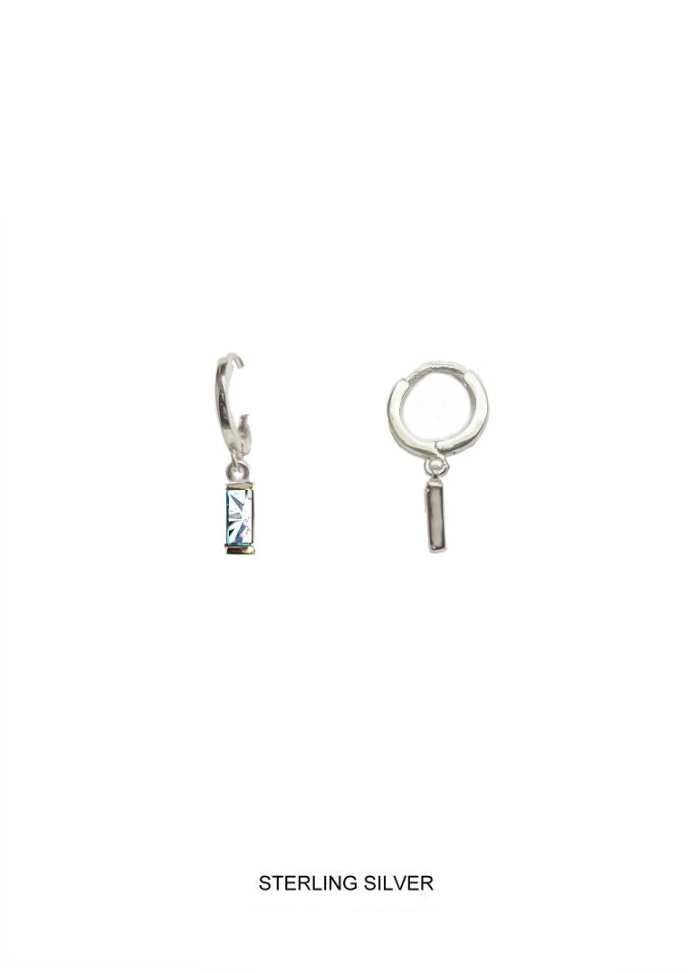 Classic and versatile, Glimmer silver huggie hoop earrings feature a dangling CZ baguette in sparkling clear crystal.