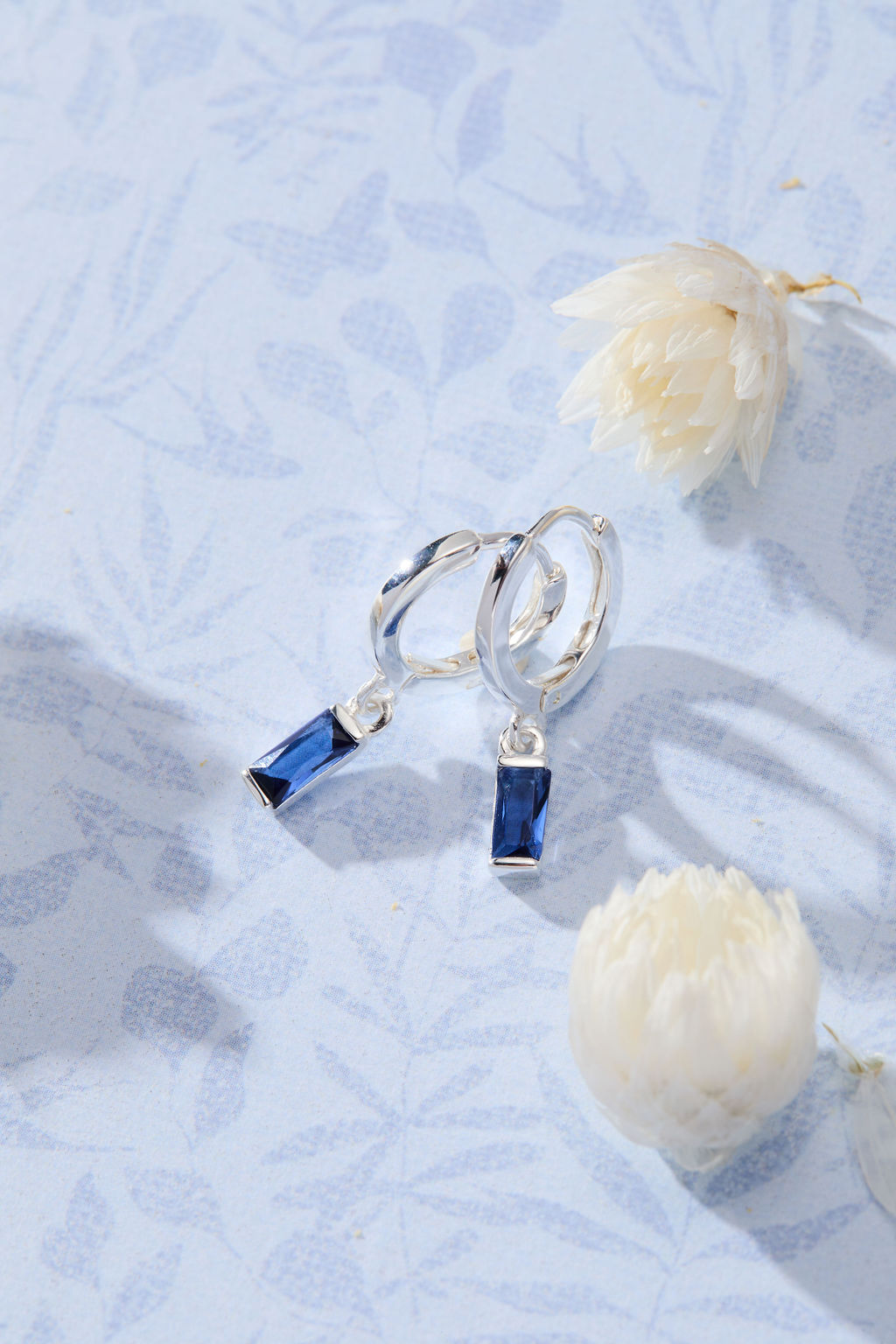 Lagoon | Protection - Healing - Tranquility | Silver Ocean Blue Baguette Hoops