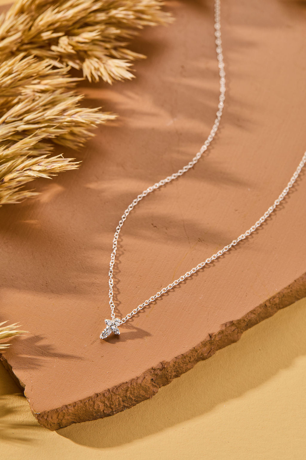 Delicate and meaningful, this sterling silver mini cross pendant is accented with sparkling cubic zirconia and hangs on a 14" chain. Perfect for younger wearers or those who prefer a subtle faith-inspired accessory, it offers a timeless symbol of belief with everyday elegance.