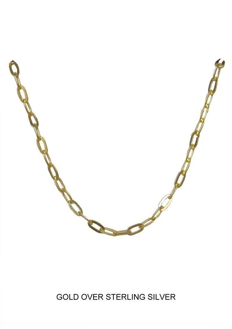 Bold in presence, delicate in form—the Lumen Link Chain is your everyday essential with a radiant twist. This 18" gold-plated paperclip-style chain features small, flat over links that catch the light with every turn. Perfect for layering or wearing solo, it's the kind of piece that looks effortless and always put-together. Your golden glow, redefined.