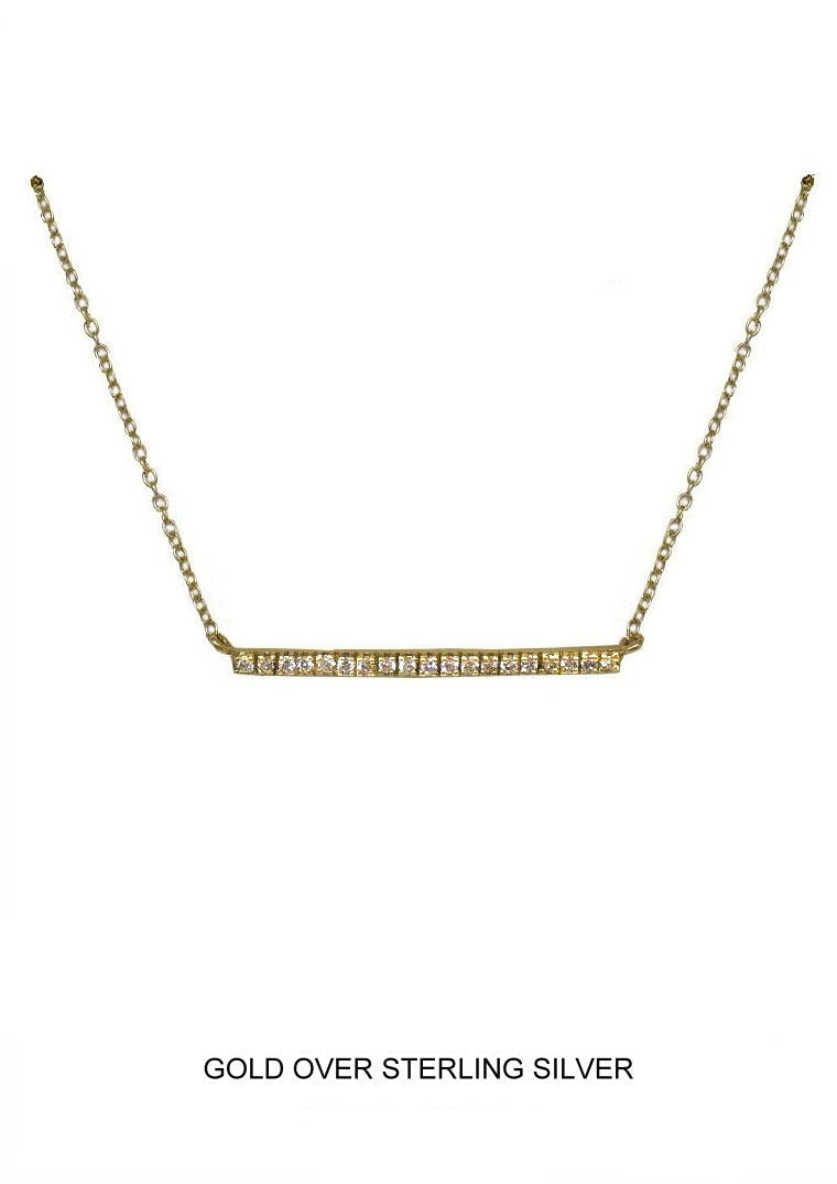 A modern classic, the Luminary necklace is similar to our Luminous necklace, but featuring a longer, slender gold bar accented with sparkling cubic zirconia. Set on a 16" chain with a 1" extender, it offers minimalist elegance that effortlessly complements any look—perfect for layering or wearing solo.