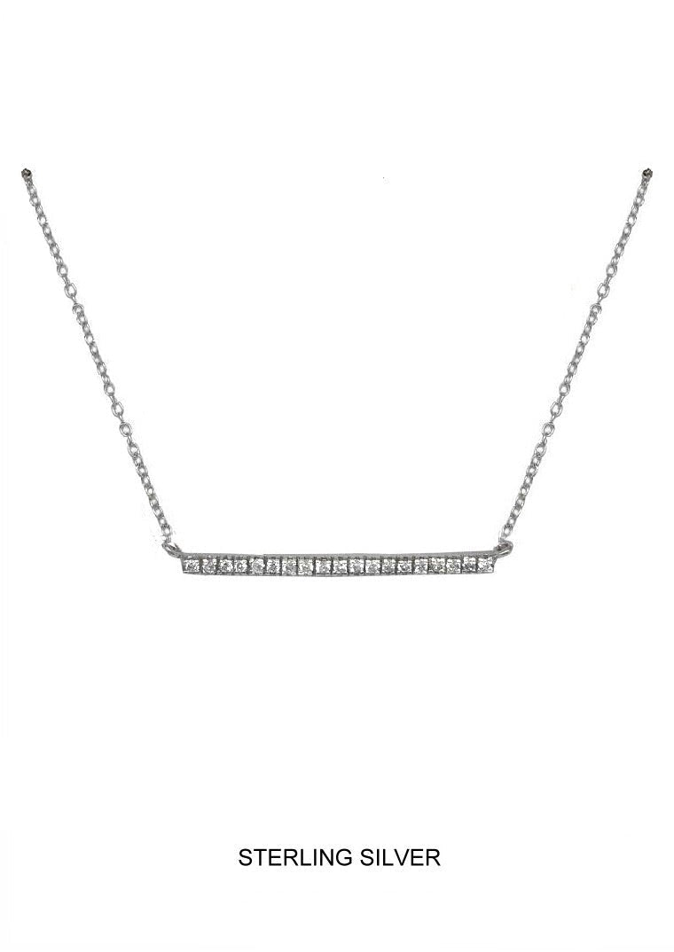 A modern classic, the Luminary necklace is similar to our Luminous necklace, but featuring a longer, slender sterling silver bar accented with sparkling cubic zirconia. Set on a 16" chain with a 1" extender, it offers minimalist elegance that effortlessly complements any look—perfect for layering or wearing solo.