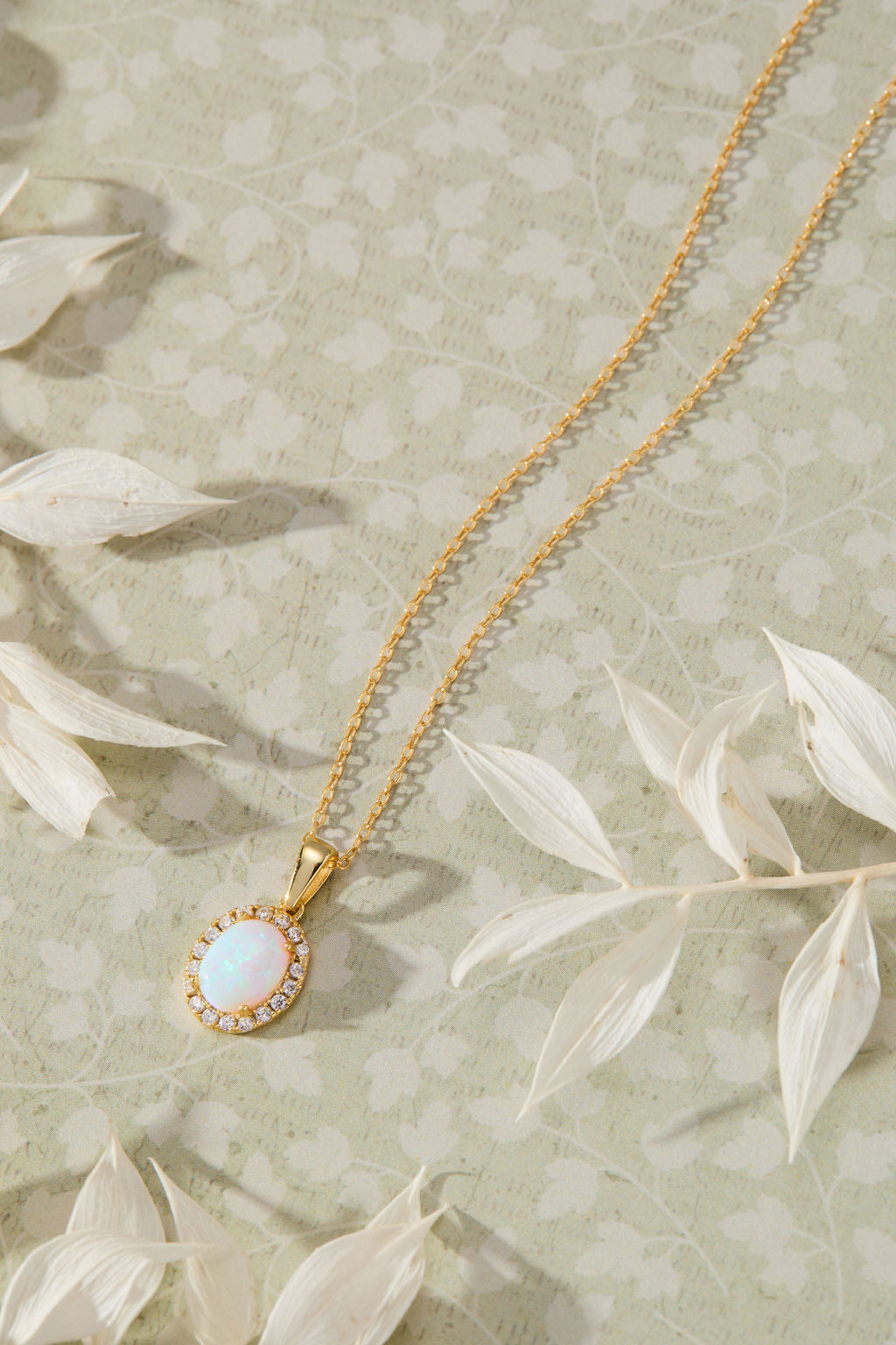 A soft shimmer with celestial energy, this golden necklace features a luminous opal paired with a sparkling CZ accents. Thought to symbolize clarity and hope, the pairing makes this piece perfect for everyday wear or as a meaningful gift. Includes a 16" chain with a 2" extender for adjustable comfort.