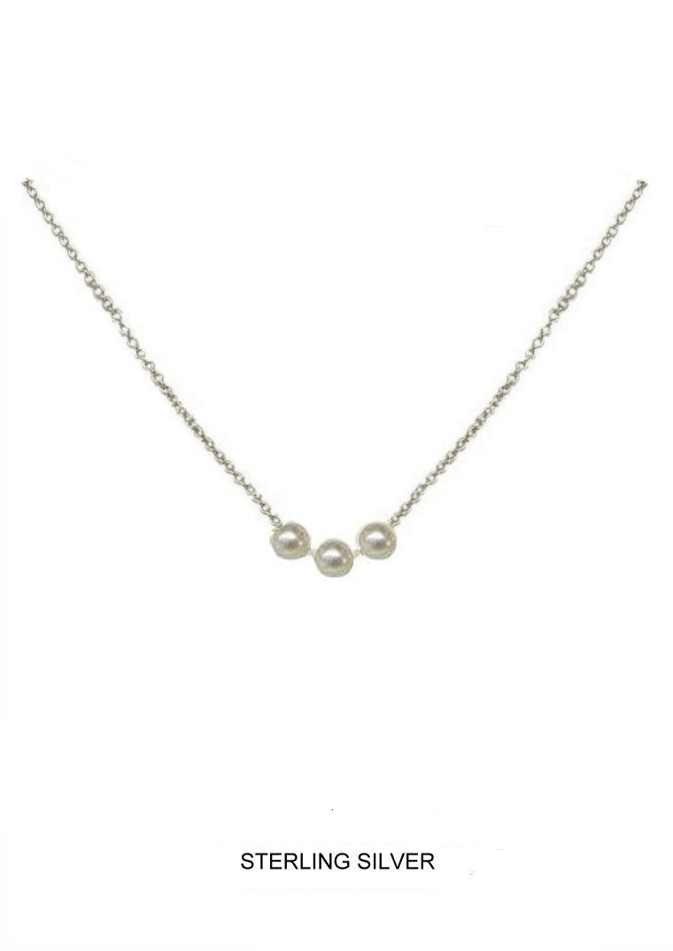 Timeless Trio - Freshwater Pearl Necklace - Silver