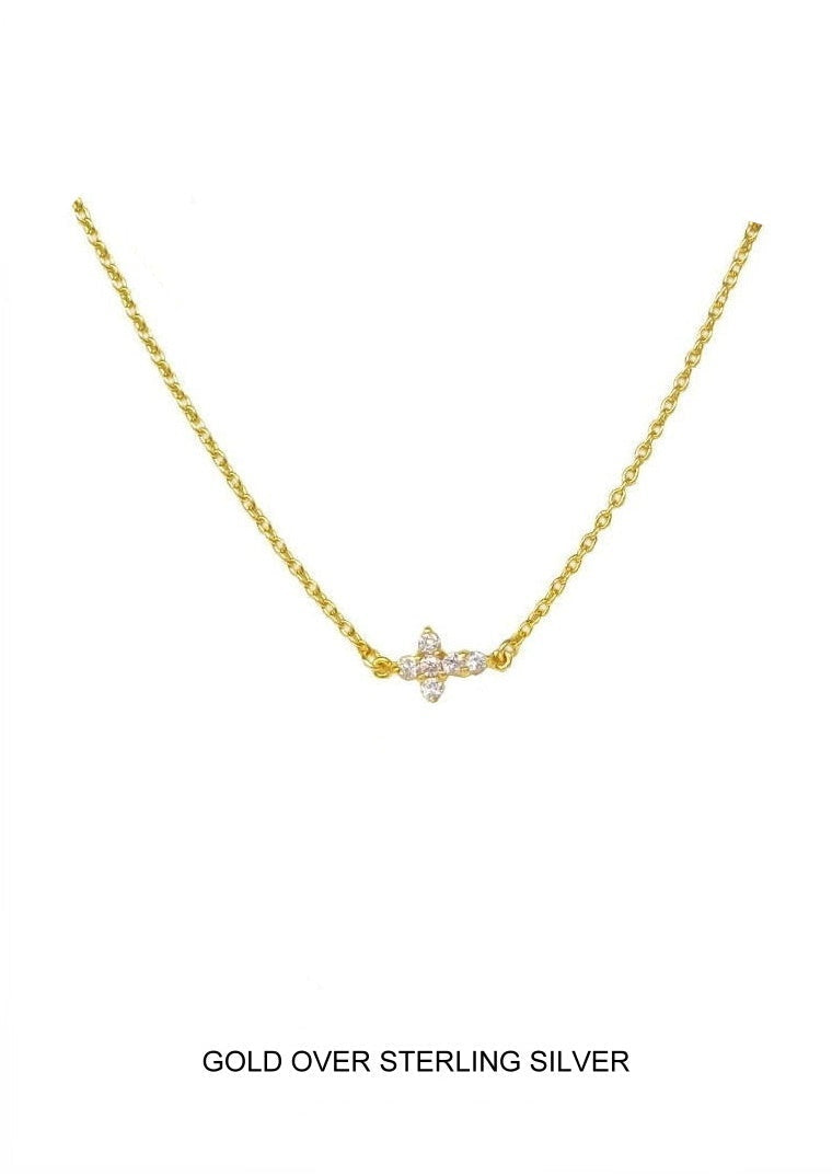 Steadfast Grace - Gold CZ Sideways Cross Necklace