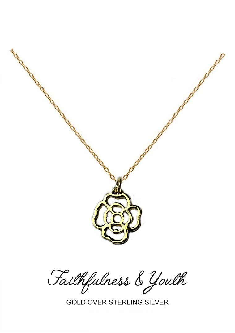 The violet represents modesty and quiet strength. Crafted in gold, this pendant embodies understated elegance.